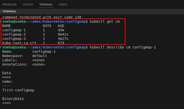 kubectl create configmap configmap-1 --from-literal=name=first-configmap